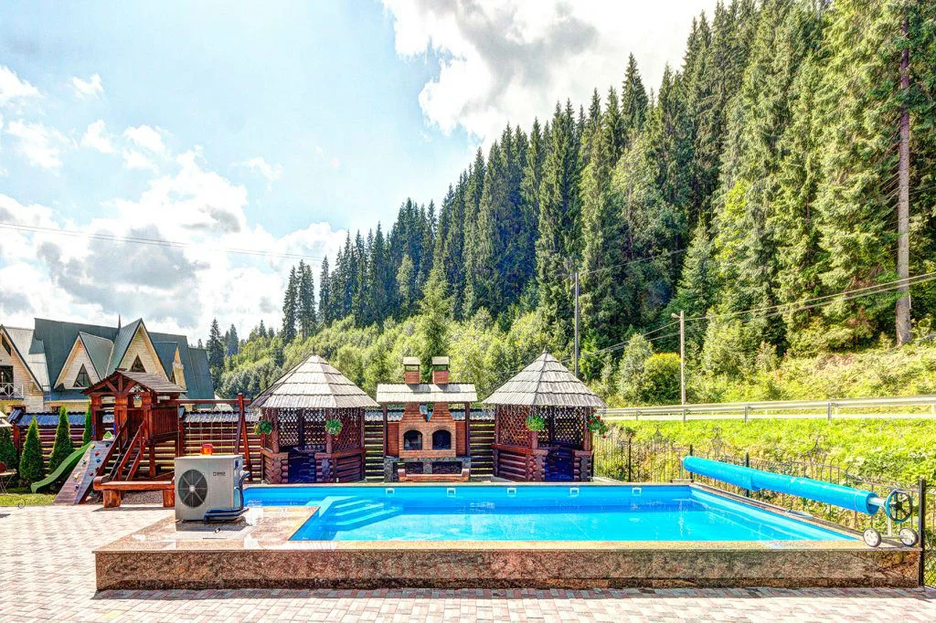 Відкритий сезонний басейн – У теплі місяці він стає улюбленим місцем гостей. Гірське повітря, сонячні промені та кришталево чиста вода — ідеальне поєднання для відпочинку всією родиною.